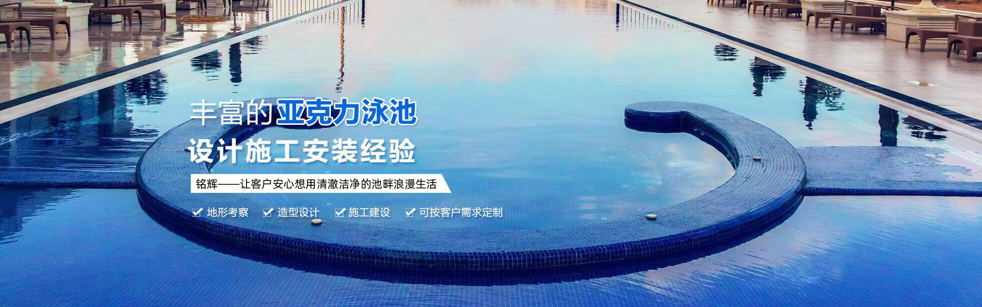 深圳市銘輝實業科技發展有限責任公司是一家從事海洋館、游泳館亞克力游泳池設計、生產制作、現場施工與后期維護于一體的專業公司,專業為海洋館工程、水族觀賞業、高檔酒店業、海洋娛樂業的客戶提供亞克力板材、觀賞魚缸、亞克力隧道、水族景觀工程設計與建造整體解決方案的專業化亞克力工程公司;公司采用一體澆鑄工藝,本體聚合的無縫拼接法,從而可以確保亞克力板材粘接牢固,整體通透,造型美觀,透明度高!并根據客戶要求,專業定做各種大型水族館、亞克力透明游泳池工程設計與安裝,與卓越地產、保利集團、龍光地產等國內知名房地產公司均有合作。